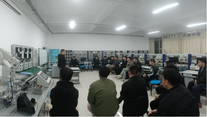 交流会上,HUB指导教师冯小林对赛事的调整、赛道分布,公司计划参与的8个赛道,即流程行业自动化方向、离散行业自动化方向(逻辑算法)、离散行业自动化方向(工程实践)、离散行业运动控制方向、信息化网络化方向、智能装备设计与数字孪生制造方向、精益智造系统设计与优化方向、自由探索方向进行了详细介绍。