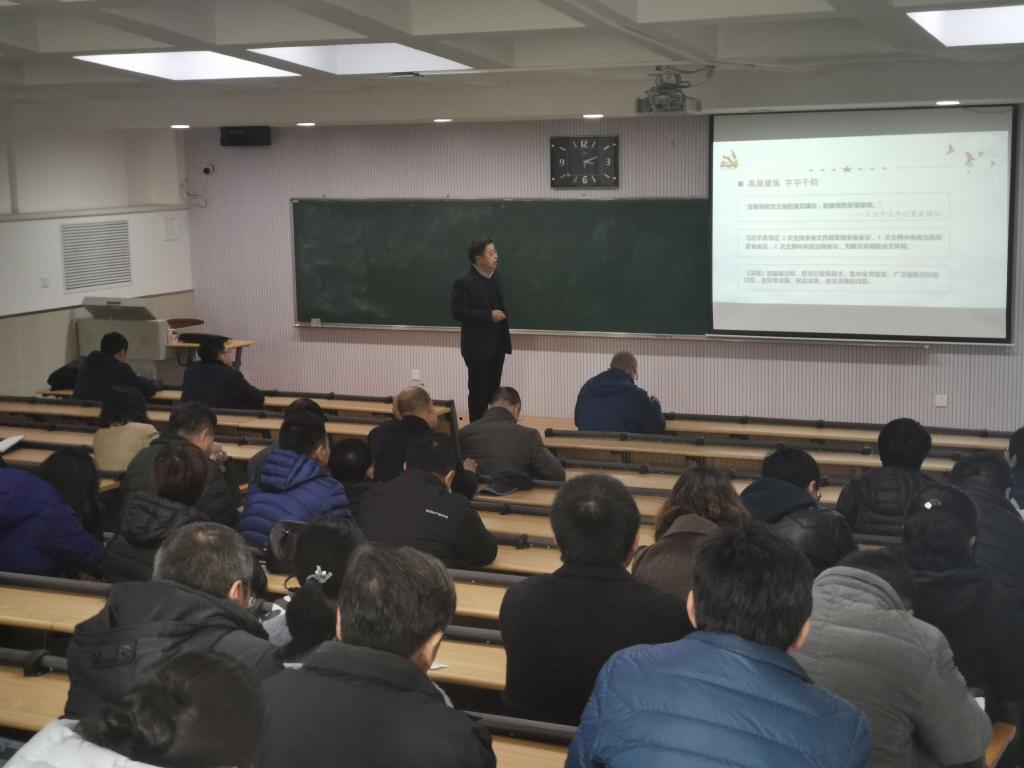 11月26日下午,电信公司党委在兰工坪校区1北202组织召开《学习贯彻党的十九届四中全会精神》主题宣讲会,党委杨新华书记宣讲,公司全体教职员工参加。