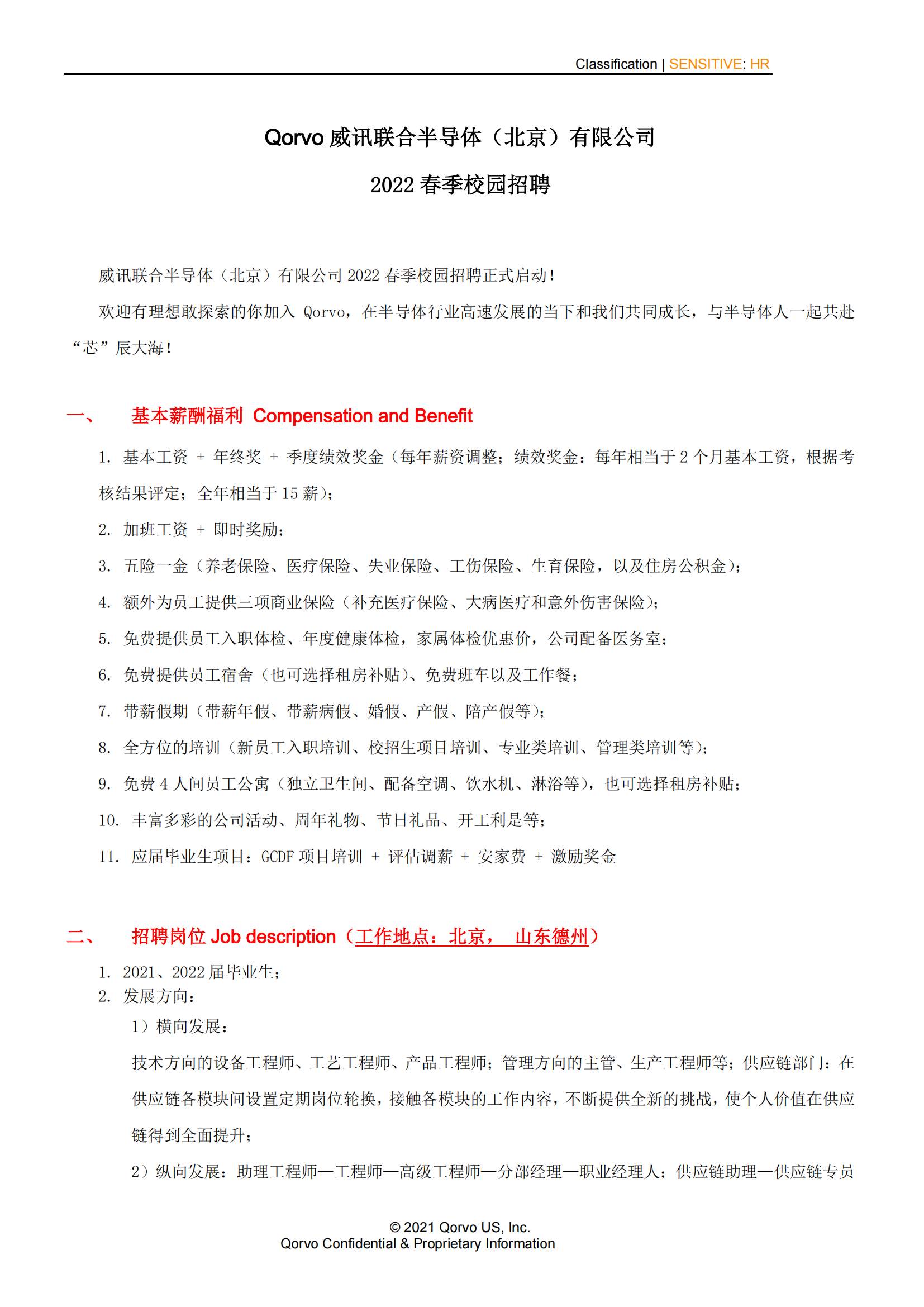 Qorvo威讯联合半导体-2022校园招聘简章